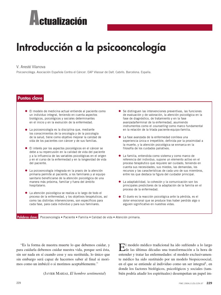trata a los pacientes con cáncer y a sus familias4. incidencia de posibles alteraciones psicológicas en personas