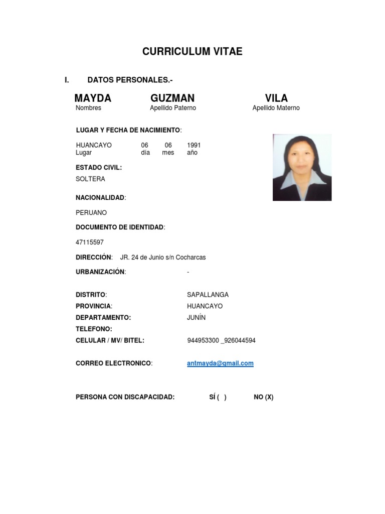 PERSONA CON DISCAPACIDAD: SÍ ( ) NO (X)