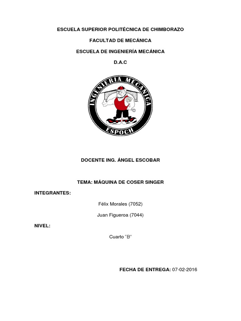 Elaborar el diseño de piezas y ensamblaje de una máquina de coser Singer doméstica