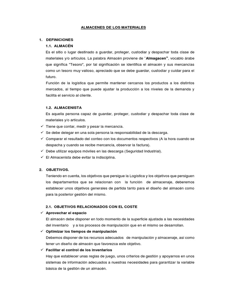 1. La custodia fiel y eficiente de los materiales o productos debe encontrarse siempre bajo