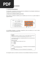 b. Cálculo de la cantidad de mortero, de cemento y de arena gruesa por m2 de muro