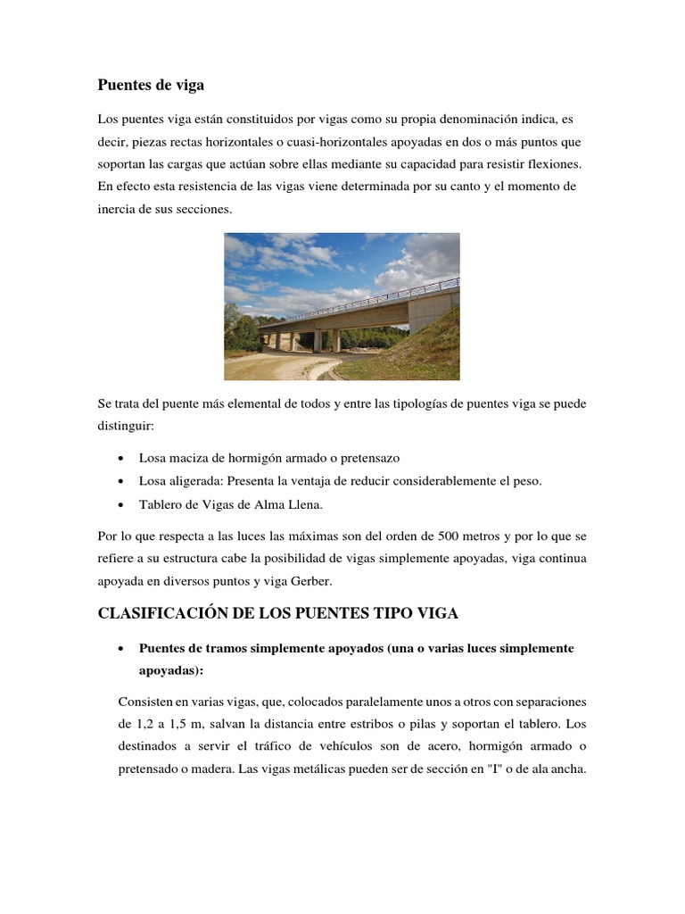 Se trata del puente más elemental de todos y entre las tipologías de puentes viga se puede