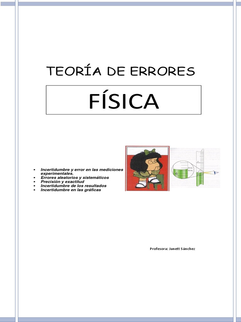 La medición de una magnitud física, siempre involucra una incertidumbre o error. Ninguna