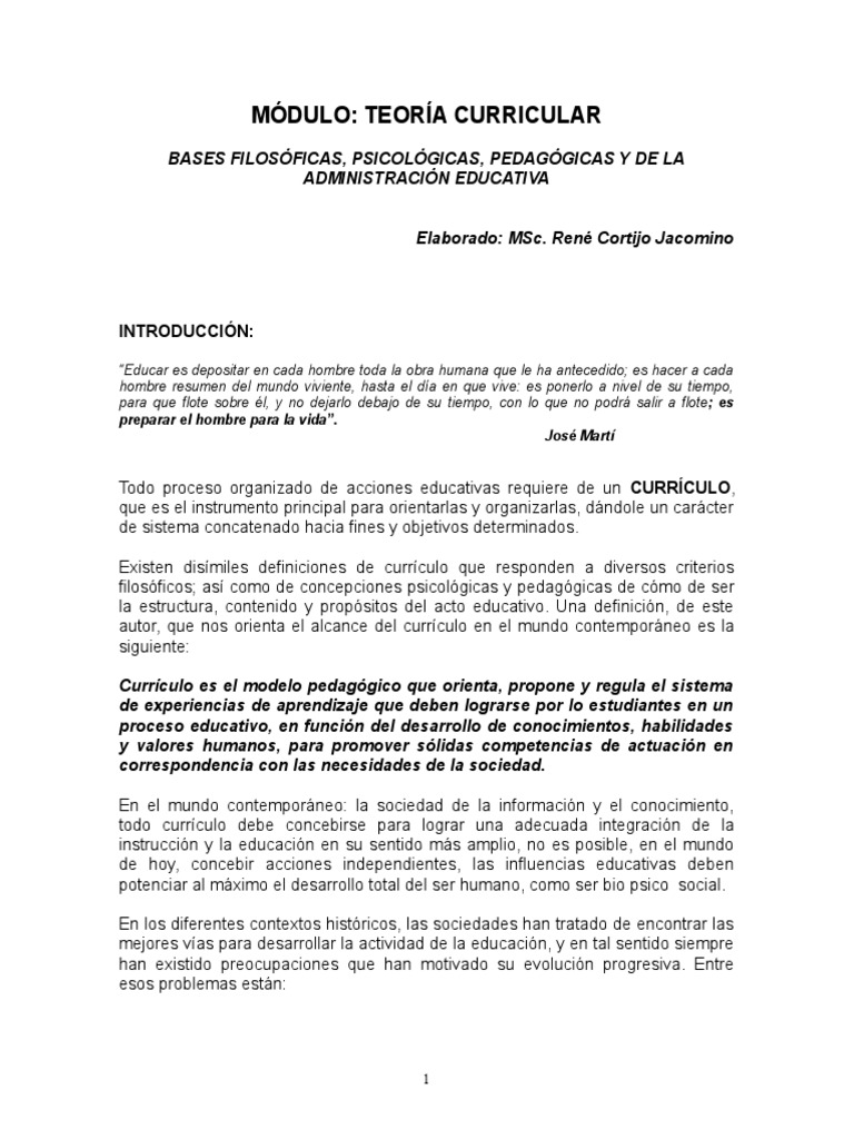 todo currículo debe concebirse para lograr una adecuada integración de la