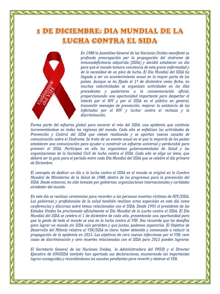 de la necesidad de un plan de lucha. El Día Mundial del SIDA ha
