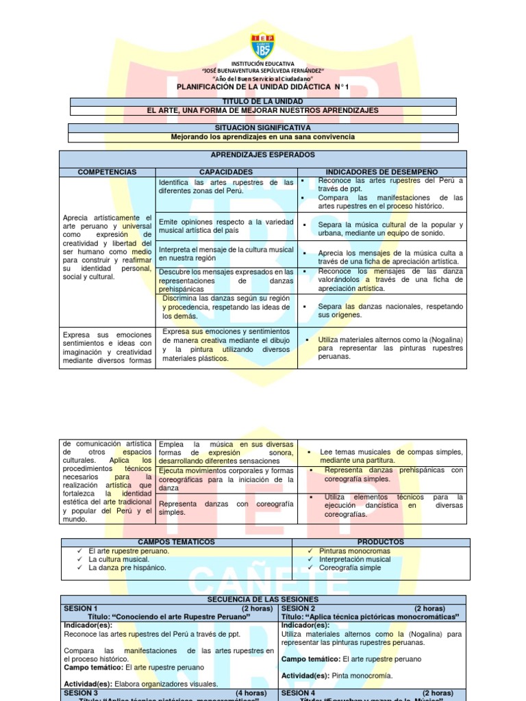 PLANIFICACIÓN DE LA UNIDAD DIDÁCTICA N° 1