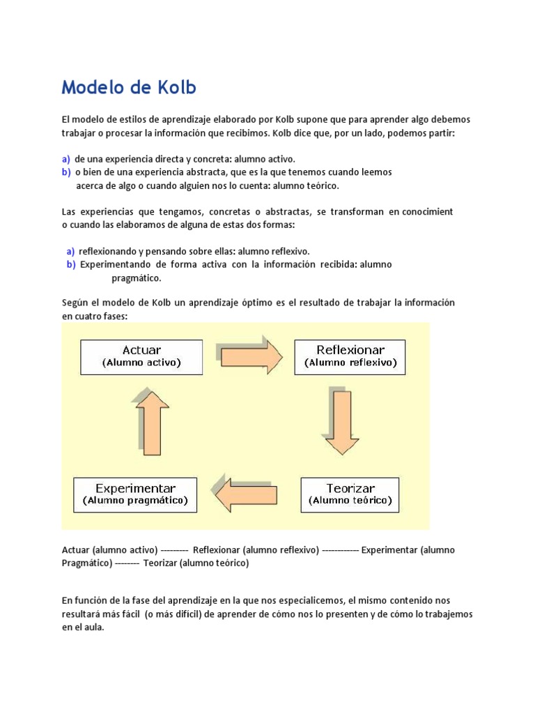 El modelo de estilos de aprendizaje elaborado por Kolb supone que para aprender algo debemos