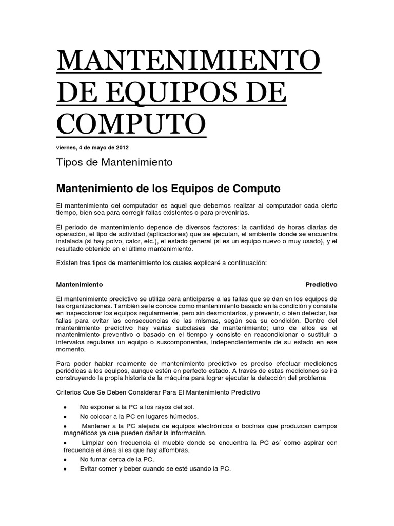 Mantenimiento de los Equipos de Computo