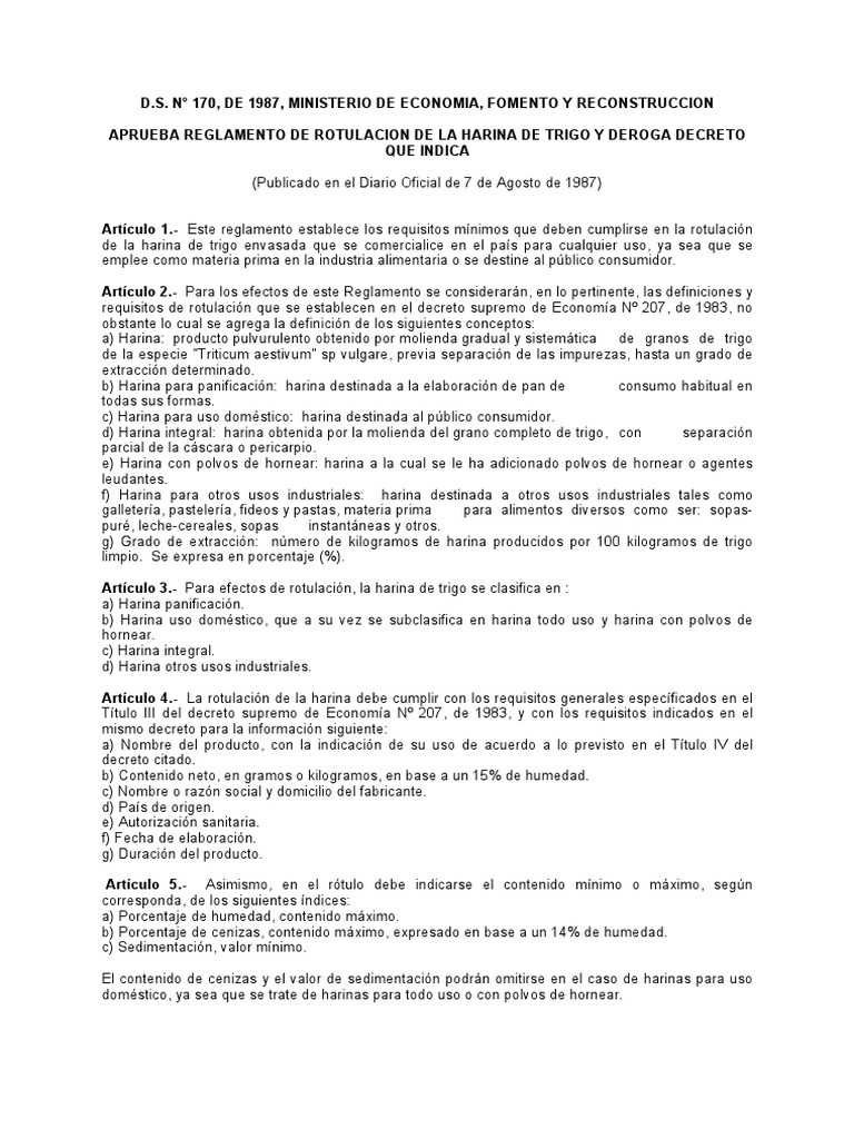 APRUEBA REGLAMENTO DE ROTULACION DE LA HARINA DE TRIGO Y DEROGA DECRETO