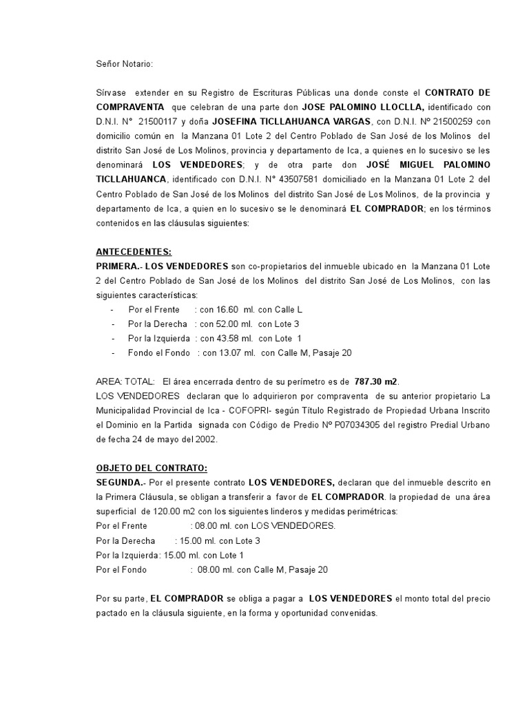COMPRAVENTA que celebran de una parte don JOSE PALOMINO LLOCLLA, identificado con
