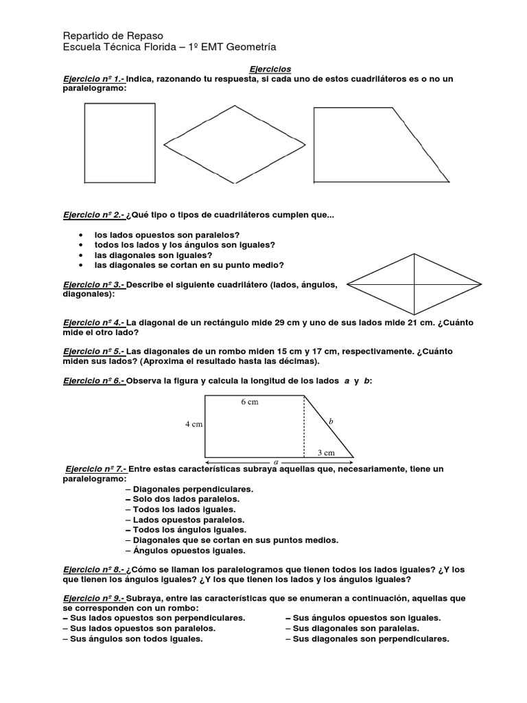 Ejercicio nº 2.- ¿Qué tipo o tipos de cuadriláteros cumplen que...