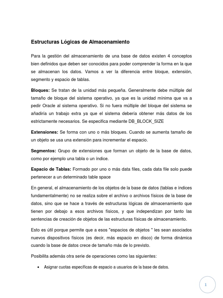 base de datos Oracle se compone lógicamente de tablespaces, y físicamente de