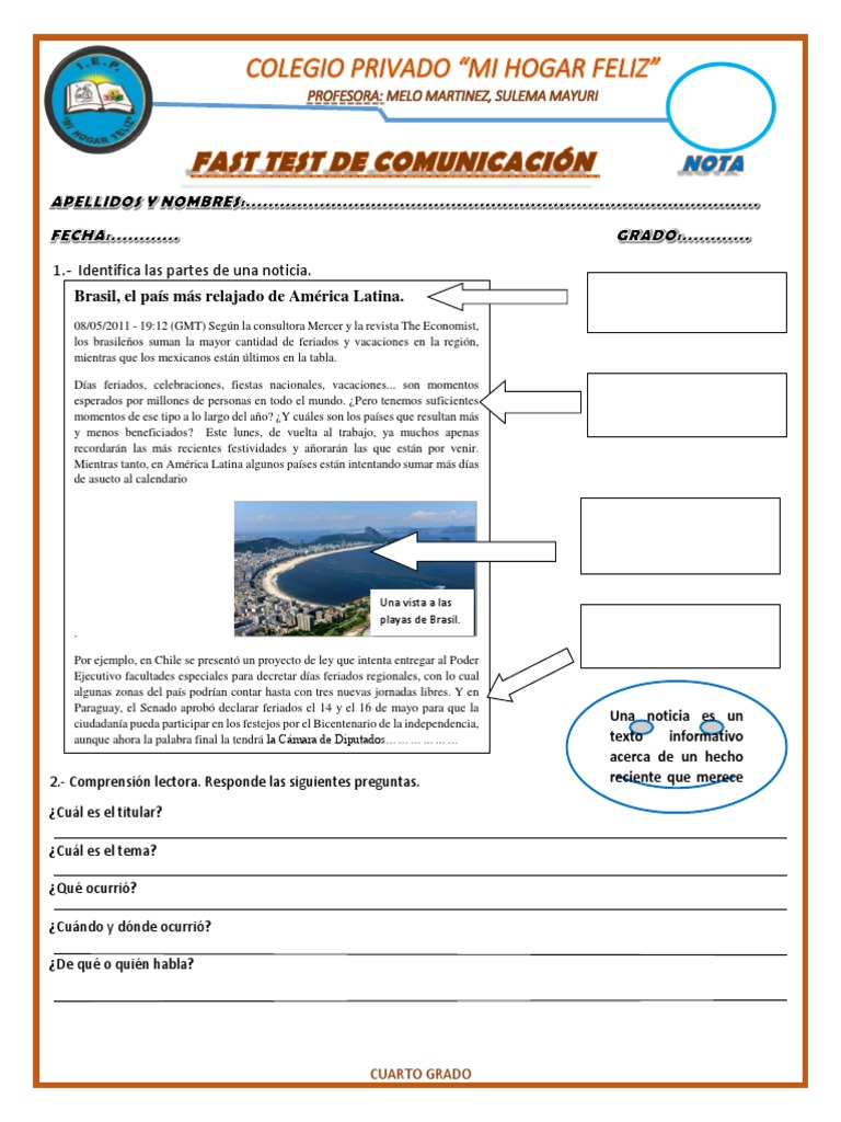 1.- Identifica las partes de una noticia.