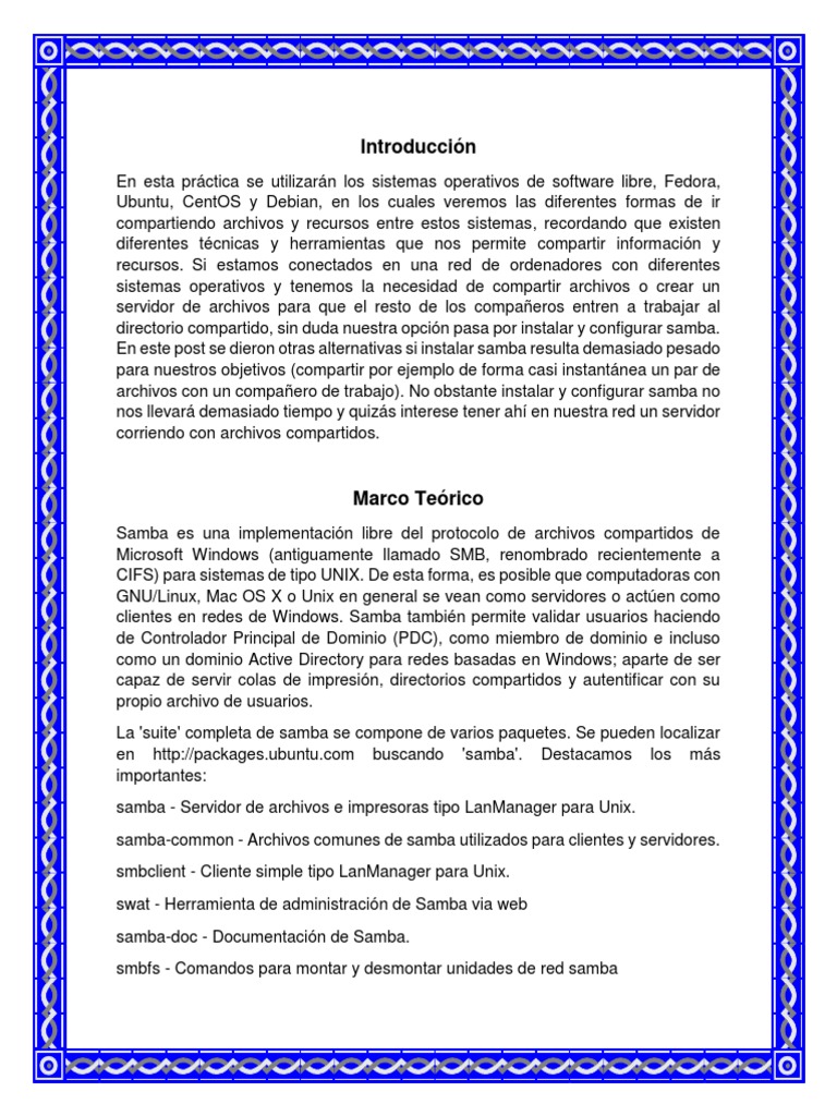 instalar en todos los sistemas operativos participantes samba, cabe mencionar que