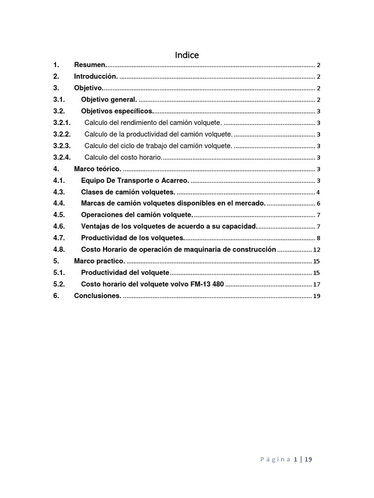 5.1. Productividad del volquete .................................................................................. 15