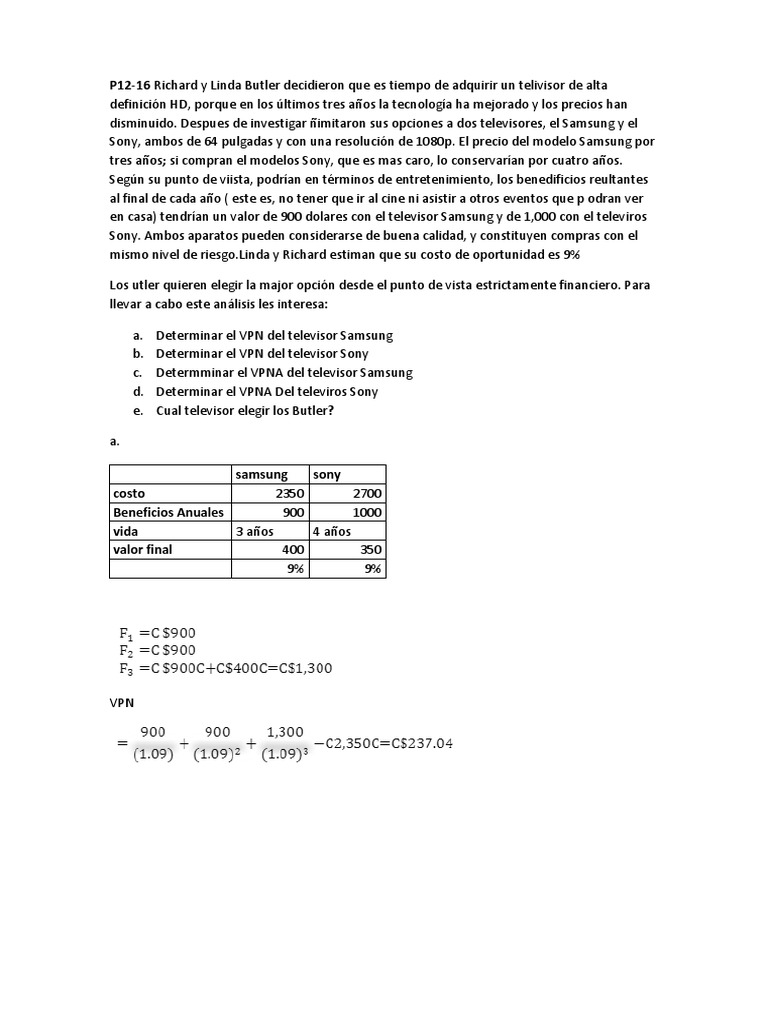 P12-16 Richard y Linda Butler decidieron que es tiempo de adquirir un telivisor de alta