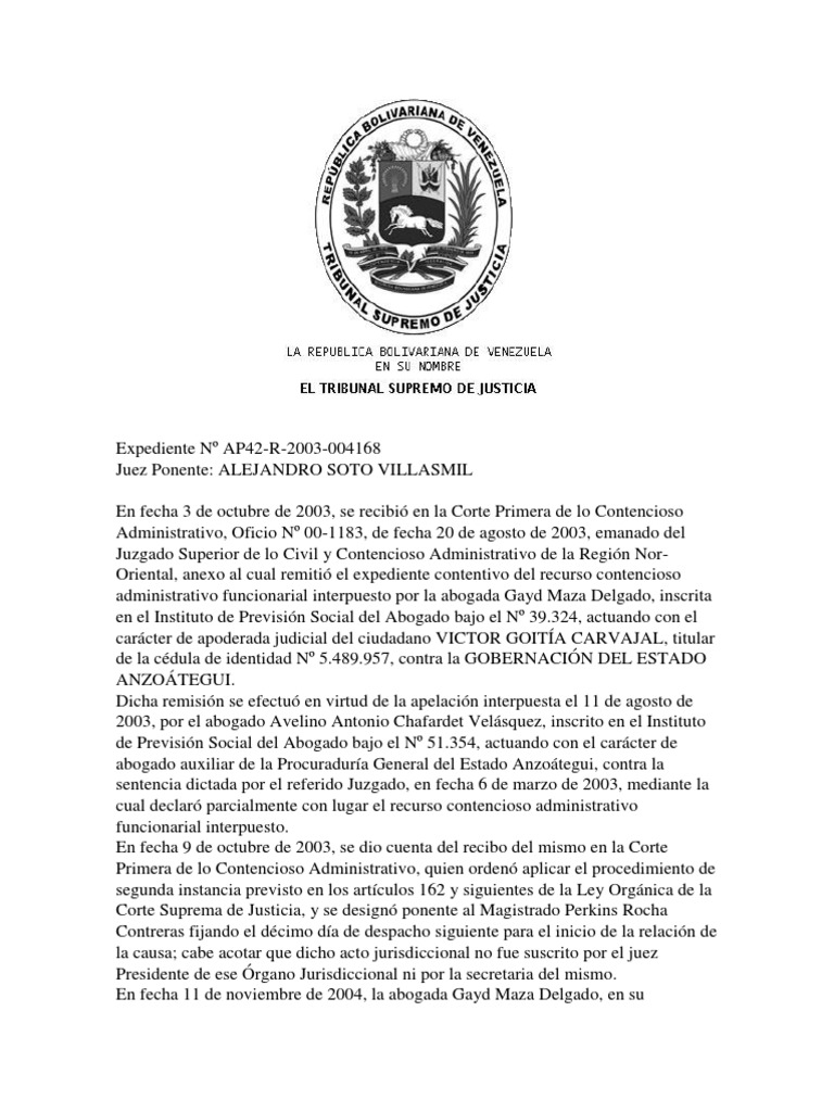 administrativo funcionarial interpuesto por la abogada Gayd Maza Delgado, inscrita