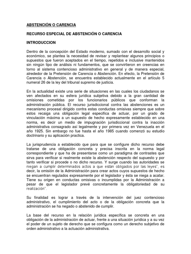 RECURSO ESPECIAL DE ABSTENCIÓN O CARENCIA