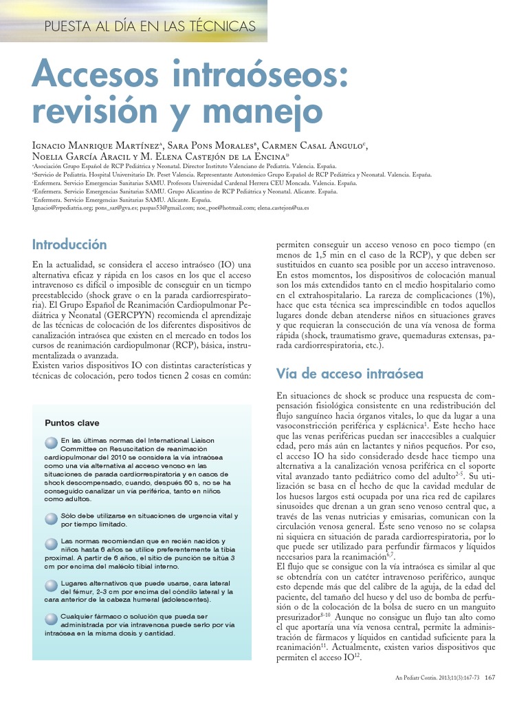 cardiopulmonar avanzada pediátrica y neonatal. 5.ª ed. Publimed; 2006. p. 79-121. 24. Avellaneda Fernando, Maximo Yedlin Pablo. Vía intraósea: empleo de agujas comu-