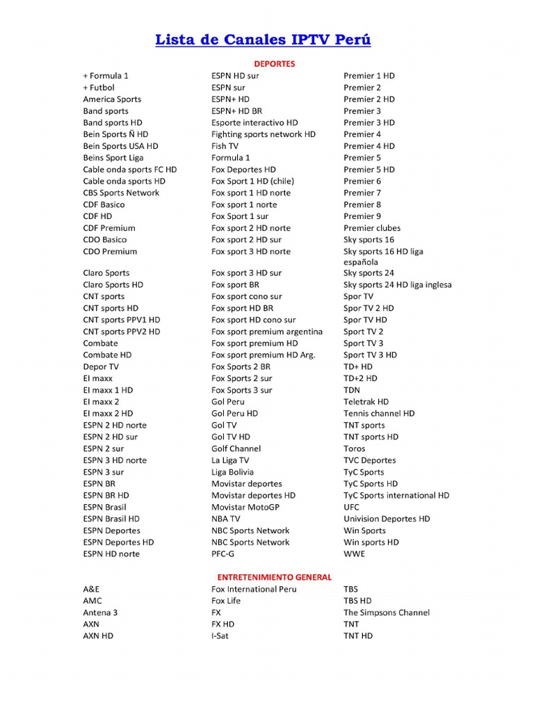 Lista de Canales IPTV Pera