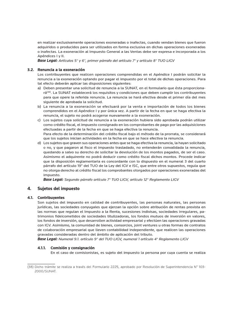 Base Legal: Numeral 4 artículo 4° Reglamento LIGV