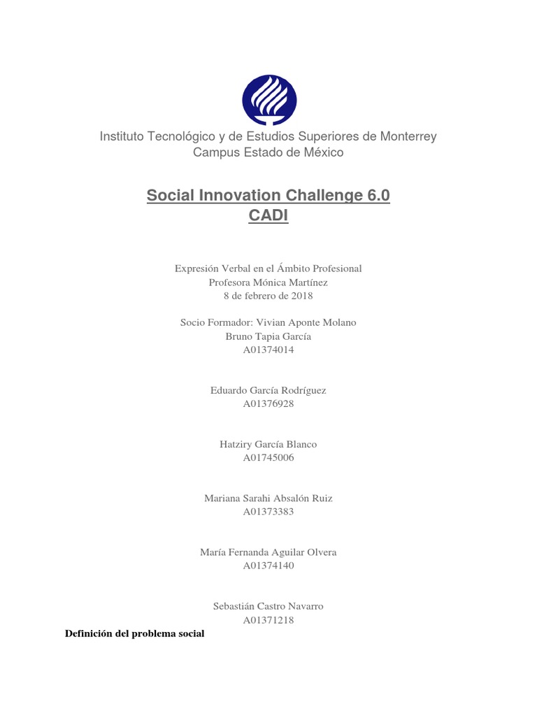 Una de las soluciones de parte de CADI para tratar con el problema social con el que los
