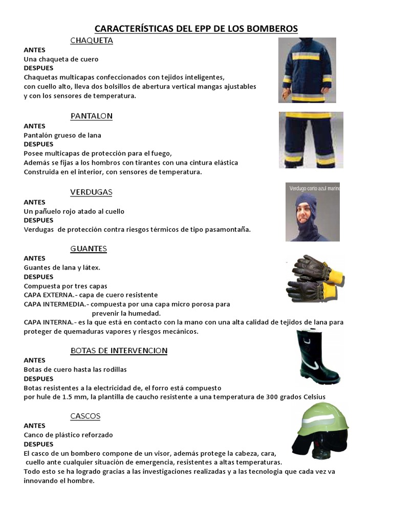 CARACTERÍSTICAS DEL EPP DE LOS BOMBEROS