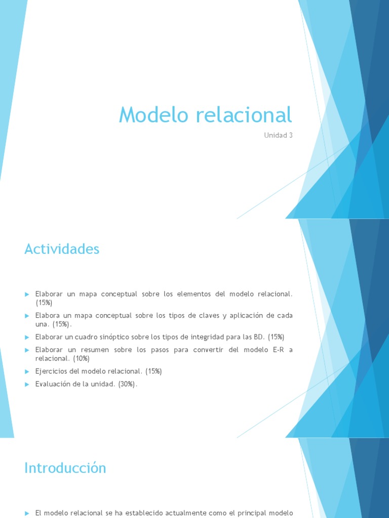 El modelo relacional se ha establecido actualmente como el principal modelo