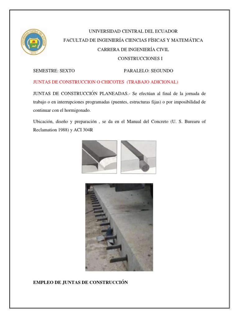 JUNTAS DE CONSTRUCCION O CHICOTES (TRABAJO ADICIONAL)