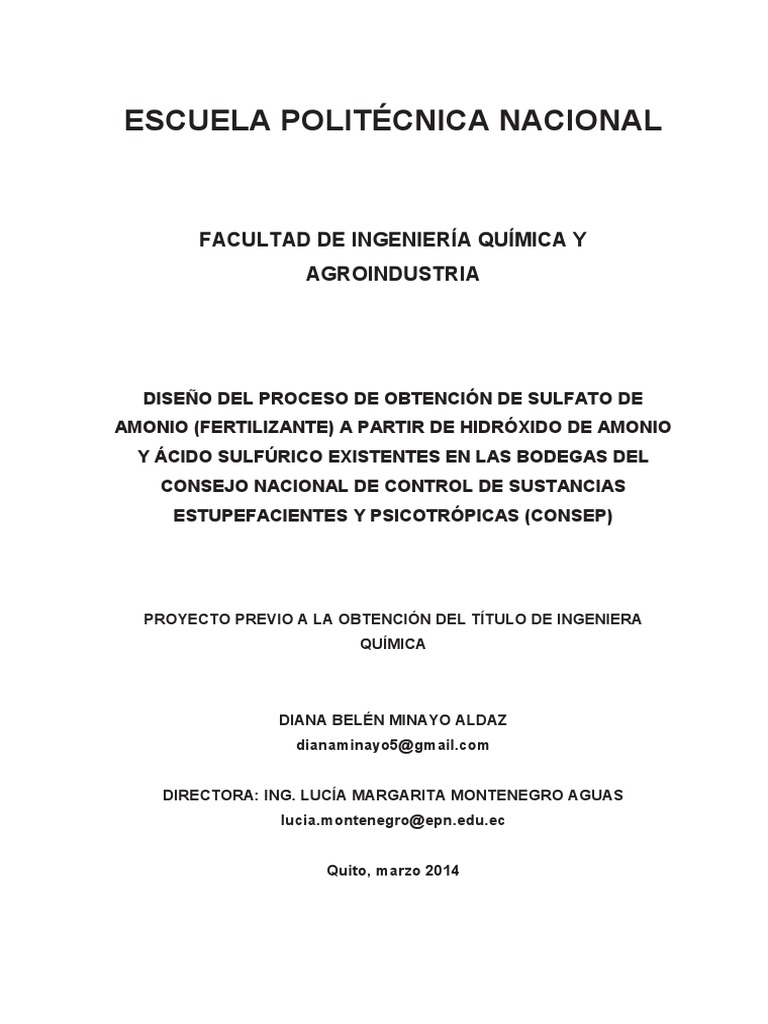 de obtención de sulfato de amonio y presenta también el rango de costos del