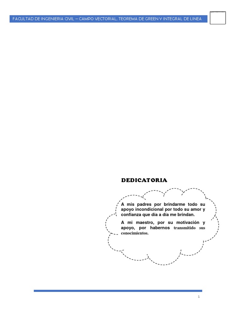 FACULTAD DE INGENIERIA CIVIL – CAMPO VECTORIAL, TEOREMA DE GREEN Y INTEGRAL DE LINEA