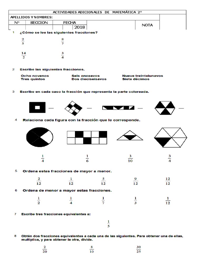 ACTIVIDADES ADICIONALES DE MATEMÁTICA 2°