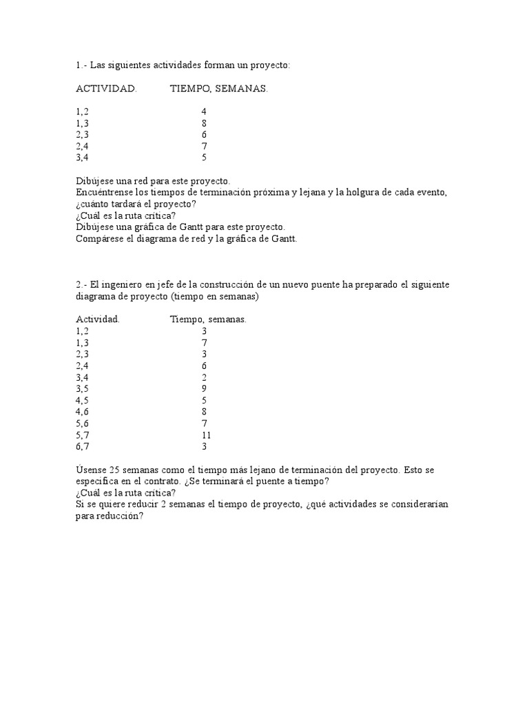 - Las siguientes actividades forman un proyecto: