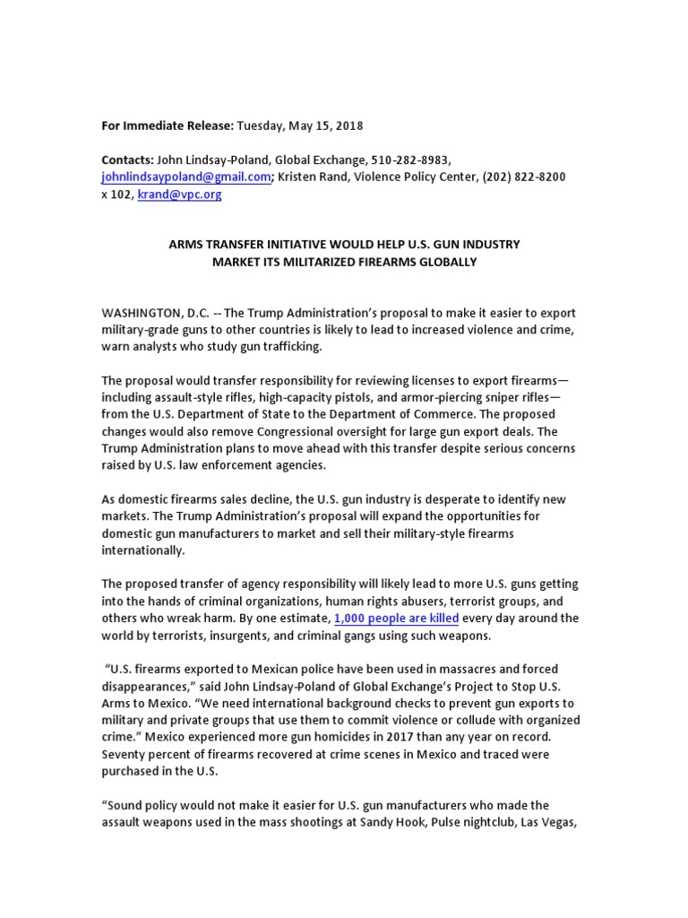 Guardar Arms Transfer Press Release 5-15-2018 para más tarde