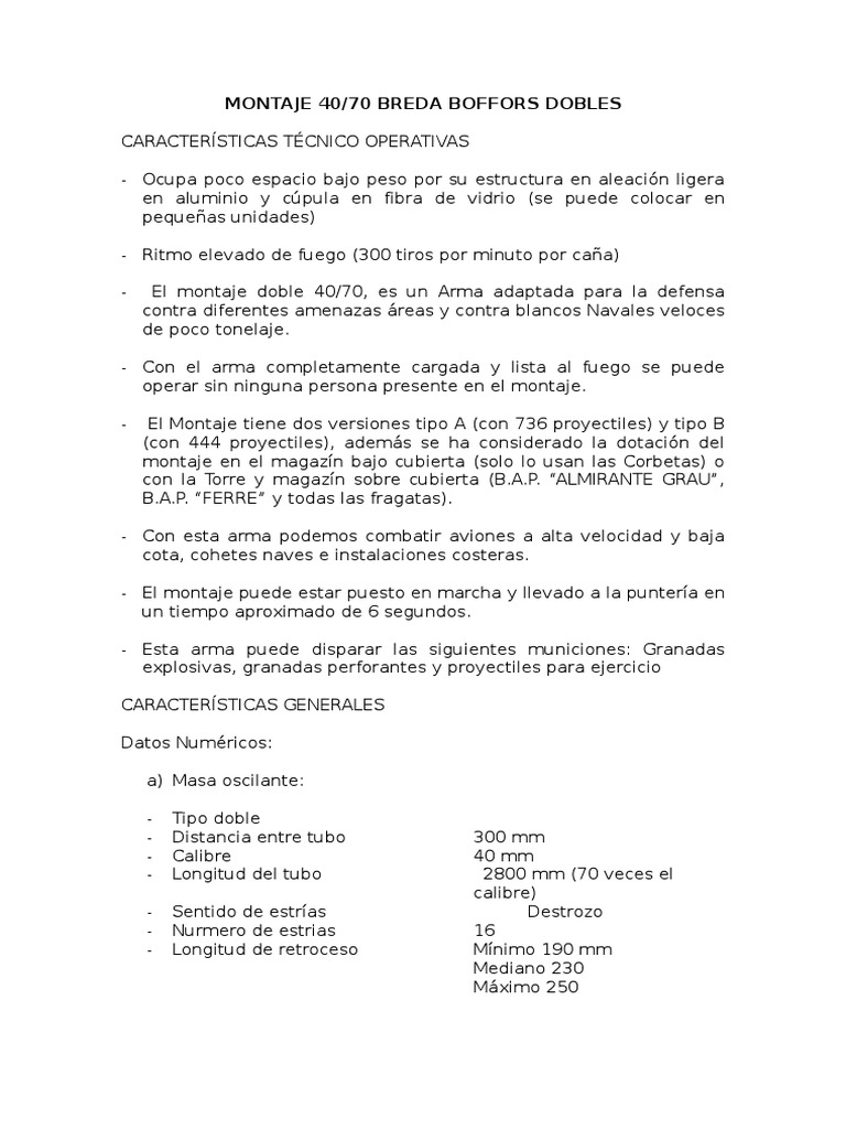 - El montaje doble 40/70, es un Arma adaptada para la defensa