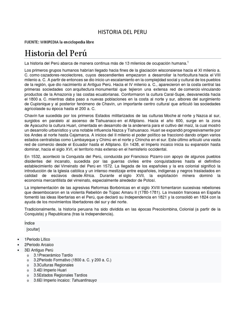 La etapa más extensa de la historia peruana es la que precede a la conquista española del siglo XVI. Las