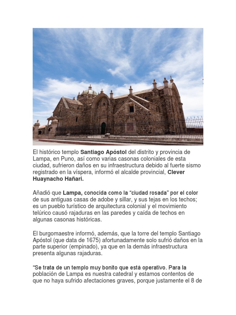 Lampa, en Puno, así como varias casonas coloniales de esta