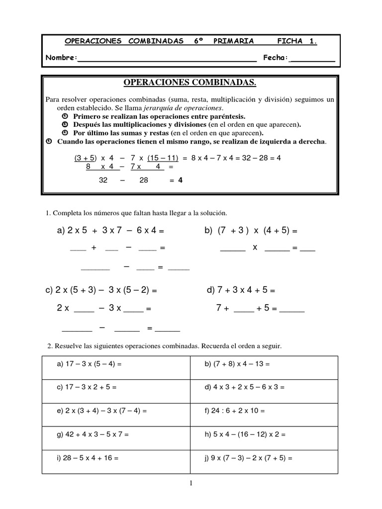 OPERACIONES COMBINADAS 6º PRIMARIA FICHA 2.