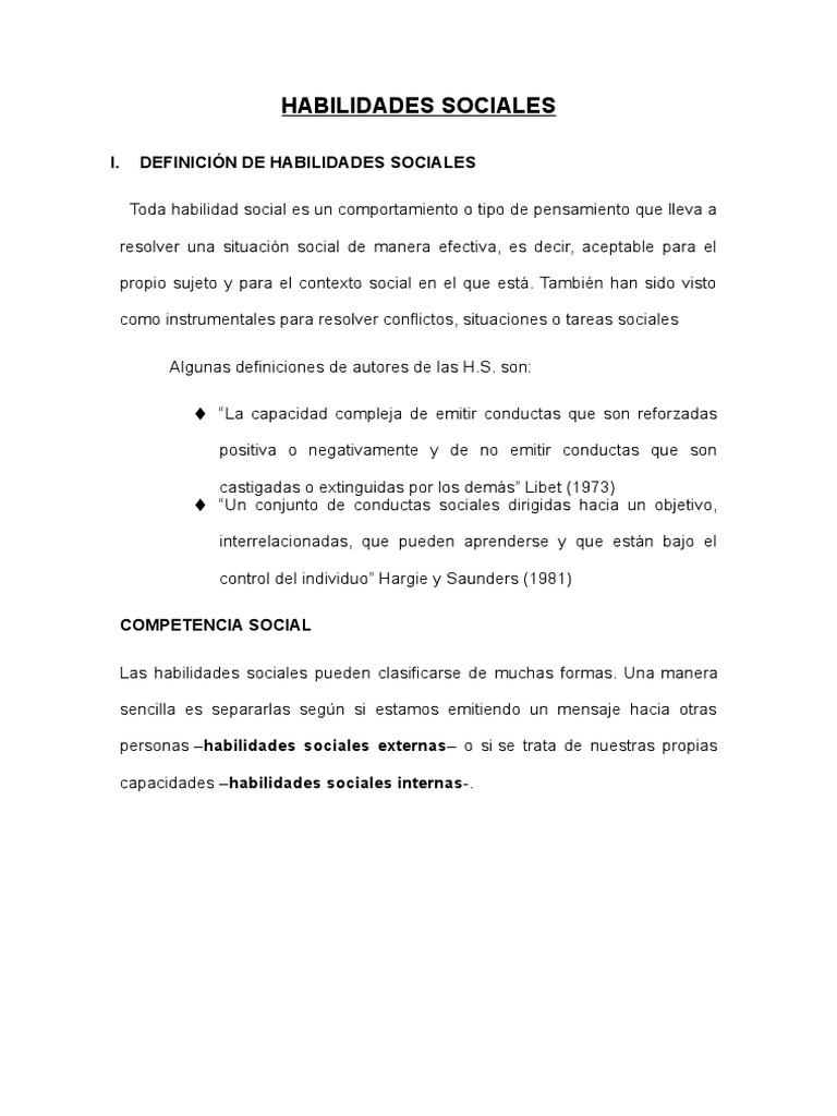 I. DEFINICIÓN DE HABILIDADES SOCIALES