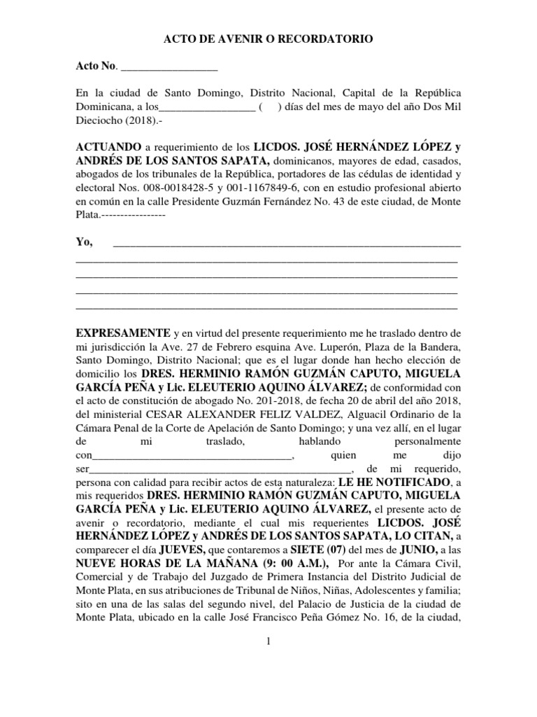 avenir o recordatorio, mediante el cual mis requerientes LICDOS. JOSÉ