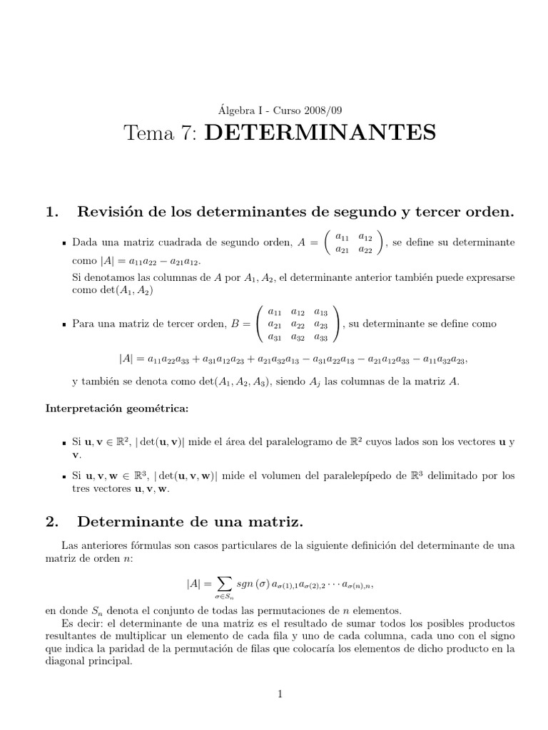 Álgebra I - Tema 7: Determinantes 7