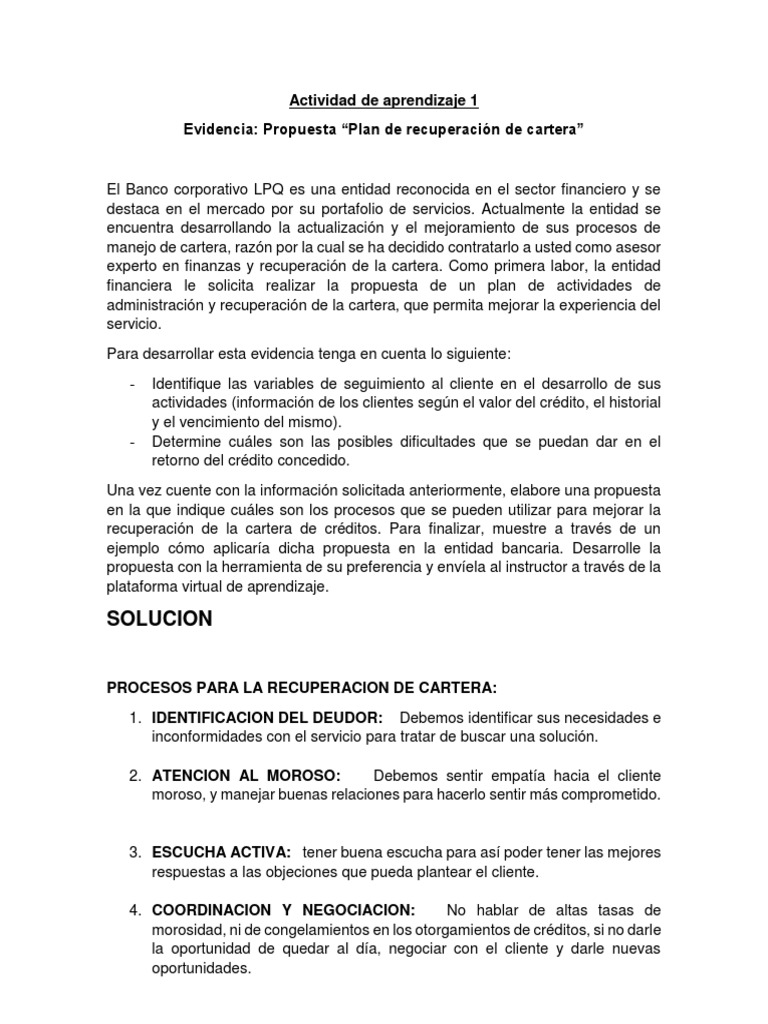 Evidencia: Propuesta “Plan de recuperación de cartera”
