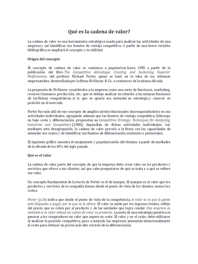 El concepto de cadena de valor se comienza a popularizar hacia 1985 a partir de la