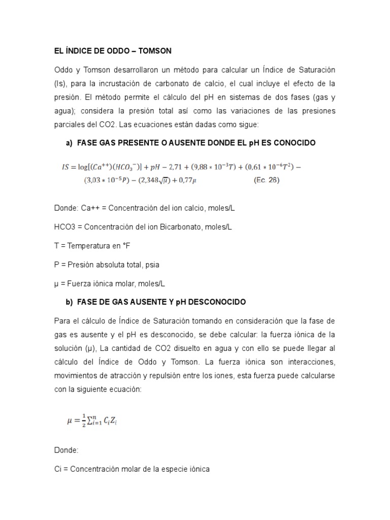 Oddo y Tomson desarrollaron un método para calcular un Índice de Saturación