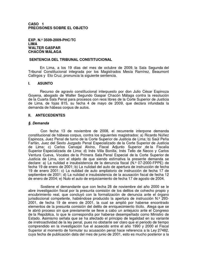 1. La presente demanda tiene por objeto cuestionar el proceso que se sigue
