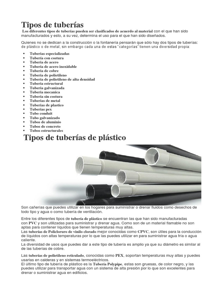 Los diferentes tipos de tuberías pueden ser clasificados de acuerdo al material con el que han sido