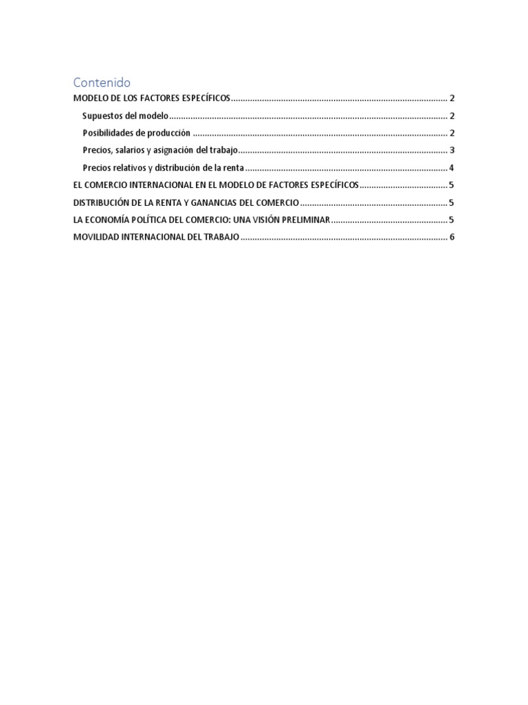 los principales aspectos del modelo de factores específicos son: (1) la determinación de las