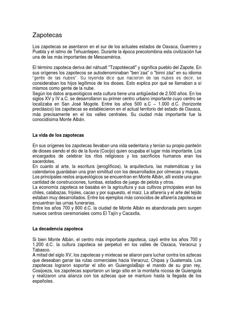 preclásico) los zapotecas se establecieron en el actual territorio del estado de Oaxaca,