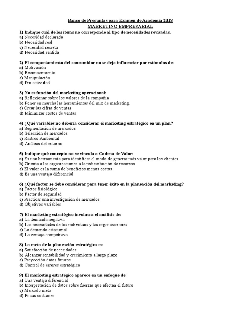 Respuestas del Balotario Preguntas Marketing Empresarial
