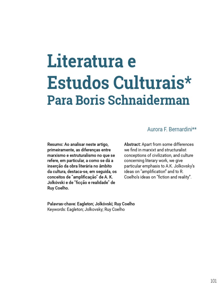 Keywords: Eagleton; Jolkovsky; Ruy Coelho